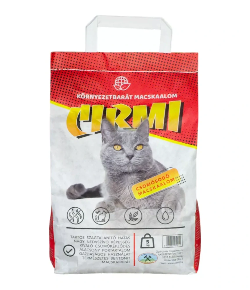Podstielka CIRMI je dostupná v praktickom 5 kg balení, ktoré je ideálne pre domácnosti s jednou alebo viacerými mačkami. Toto balenie zabezpečuje dlhšiu výdrž a je ekonomickým riešením pre pravidelnú údržbu mačacej toalety.