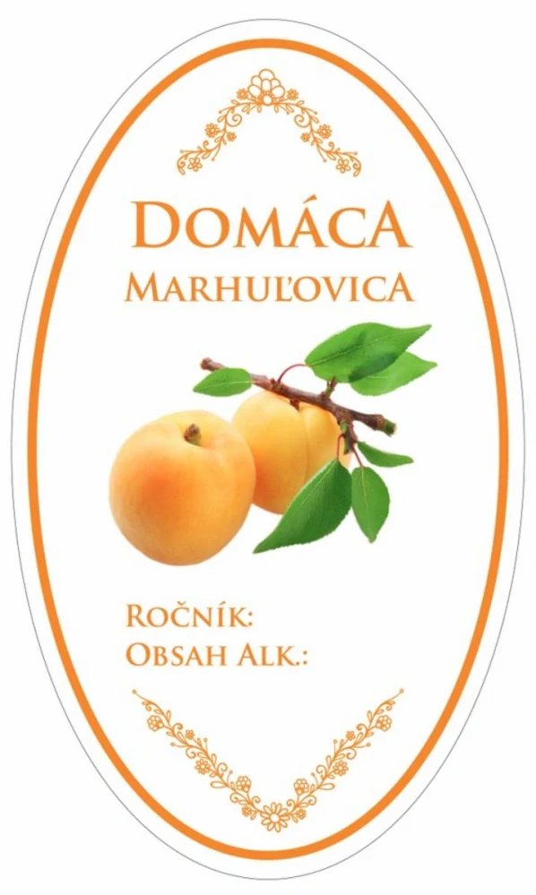 Samolepka na fľašu Marhuľovica domáca, 16ks oválnych etikiet