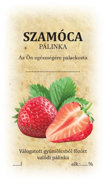 Vhodné na darovanie: Etiketa SZAMÓCA pálinka (Jahodovica) je ideálnym doplnkom na darovanie vašich domácich alkoholických nápojov. Elegantný dizajn a špecifické označenie produktu robí váš destilát vynikajúcim darčekom pre priateľov, rodinu alebo obchodných partnerov, ktorí ocenia kvalitu a starostlivosť, ktorú ste do výroby vložili.