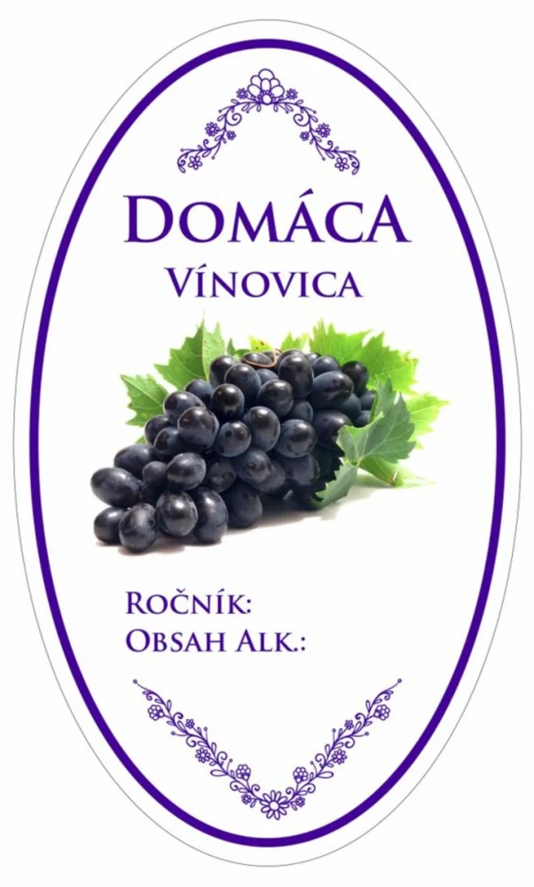 Samolepka na fľašu VÍNOVICA domáca, 16 ks oválnych etikiet (55x93 mm)